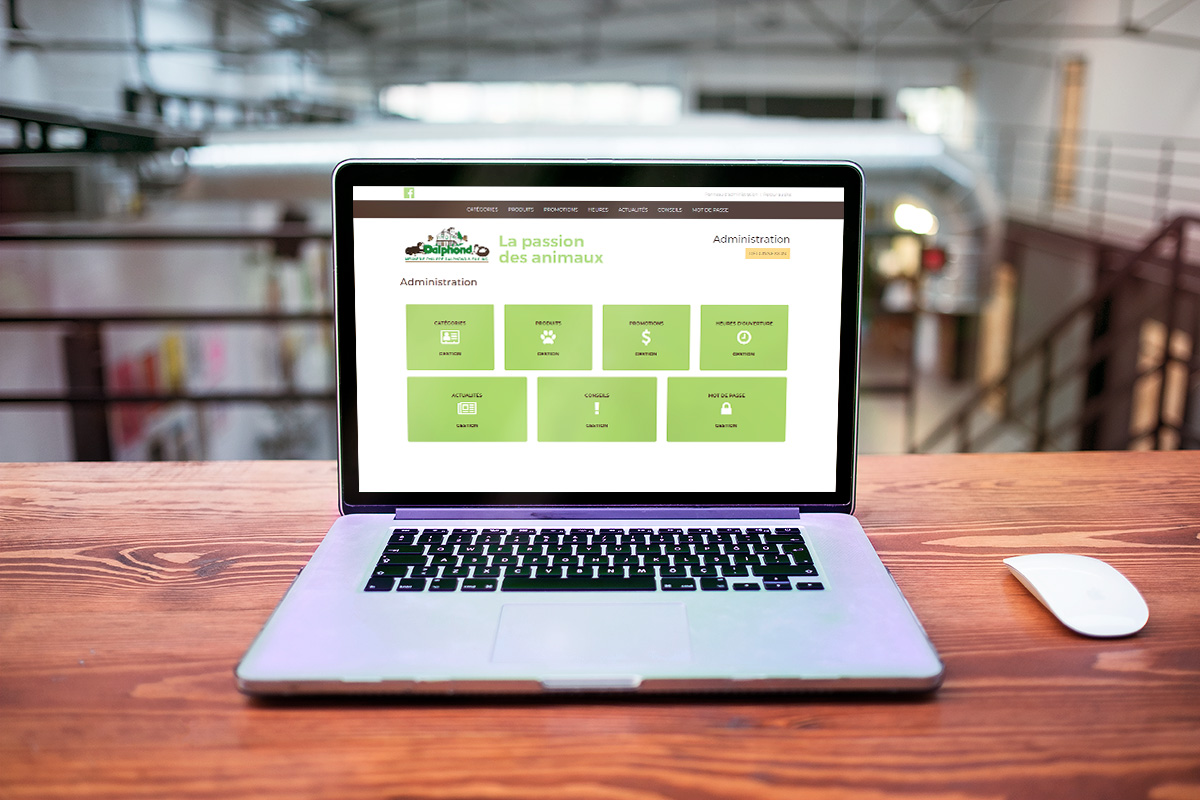 À partir d'une interface d'administration la Meunerie Dalphond peut faire la gestion de ses produits, promotions, heures d'ouverture, actualités et conseils.